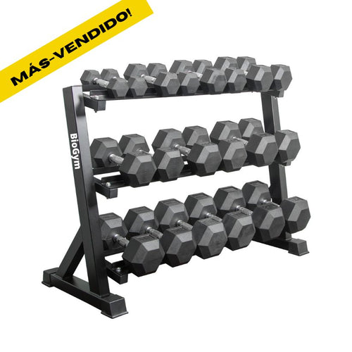 Pack Mancuernas - 10 Pares De Mancuernas 275kg + Rack Horizontal Mancuernas 3 niveles | BIOGYM
